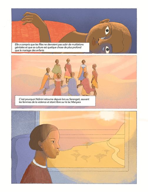«Malgré toutes les contradictions du peuple masaï, pour moi, c'est un lieu où l'on prenait soin de moi, où l'on avait besoin de moi et où j'avais ma place », se souvient Ndinini, tandis qu'une imposante colline s'élève derrière elle. Des rangées de baobabs, surnommés « l'Arbre de Vie », poussent au pied de la montagne qui s'étend à perte de vue.